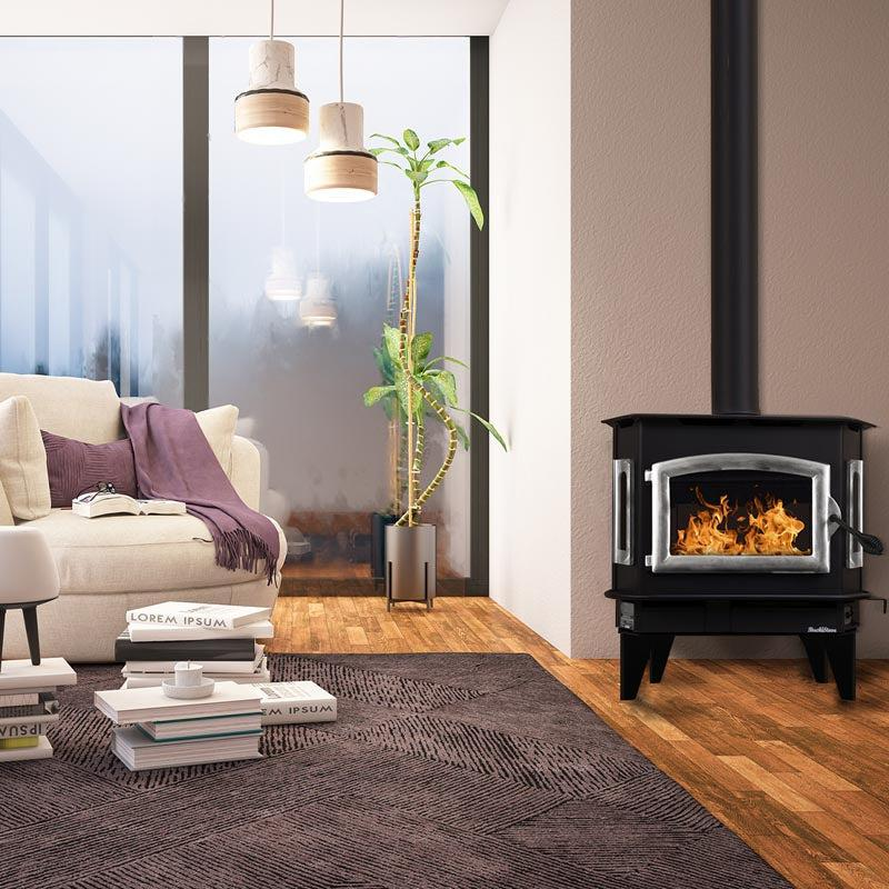 Model 81 provides a rich dramatic focal point for a full view of the essence of a wood-burning stove. It is an outstanding choice for large homes. It is available as a freestanding stove or as an insert for your masonry fireplace with a heating capacity of 1600 to 2700 square feet. Optional black, gold, or pewter legs and door. Standard features include durable non-catalytic technology, factory installed variable speed blower, ash removal tray and glass door with airwash system. Cutting edge technology crafts the classic clean lines and modern designs you see in every one of these Buck Stove Model 81 Non-Catalytic Wood Stoves. Buck Stove has a facility in Spruce Pine, North Carolina where it makes every product. This space gives you the classic Buck Stove hearth technology you’re searching for but crafted with the latest in design machinery. Manufacturing quality appliances has been their top priority since day one. Using high quality Pittsburgh steel and sourcing other domestically manufactured materials is important to Buck Stove. These high quality parts make Buck Stoves a reliable source of heat when you need it most. When you own a Buck Stove you own a quality product built with pride by quality craftsmen.