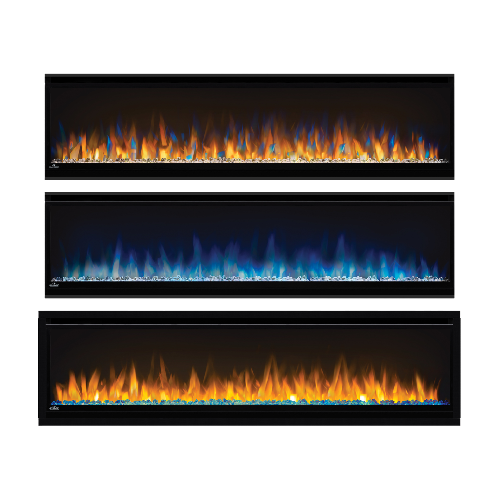 - Four flame color options; blue, orange and multi-color
